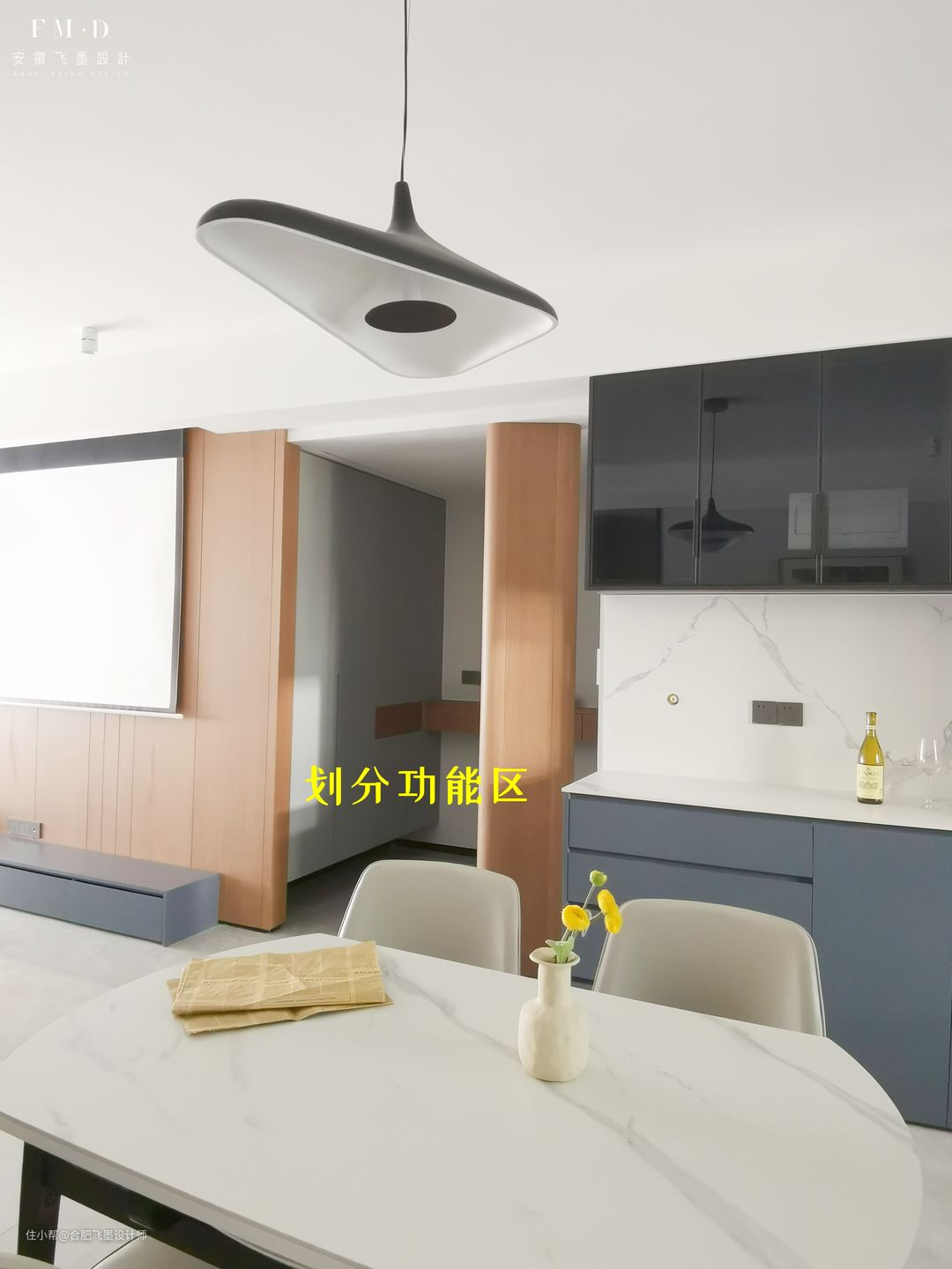 还有就是利用悬空柜来达到屏风的目的,【金隅南七里】这家就是参考样板,平板抽缝工艺搭配无把手,轻盈感、高级感十足。储物功能也不输,家里物品完全不愁没地放。