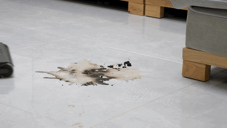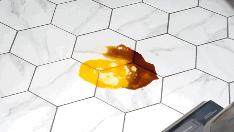 即便是这种非常难清理的蛋液和酱油混合物也完全不在话下,有一说一,这个测试,在我之前的一些洗地机测试中曾经多次出现过翻车现象,市面上的部分洗地机是完全没有办法一次性将这种混合物完全清理干净的。