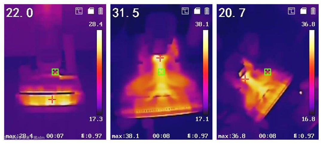 通过红外热成像仪我们可以清楚的看到这款洗地机的主动烘干效果,而且因为采用的是低温烘干技术,其烘干温度处于一个非常安全的范围,完全不需要担心在烘干过程中会出现意外。
