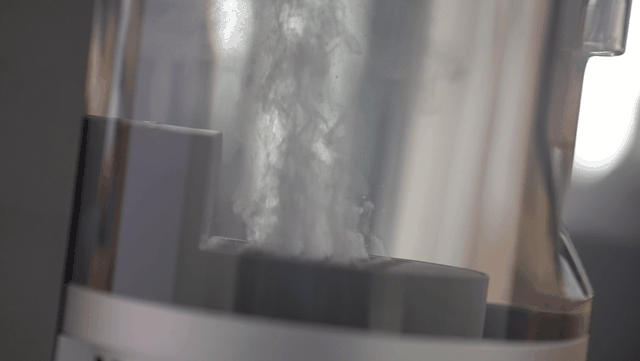 在每次清洁完地面后,我们只需要将洗地机放置在底座上,然后按下自清洁按键,滚刷就会高速转动进行自清洁,从GIF上我们可以看到,脏污的滚刷正在快速恢复到清洁状态。