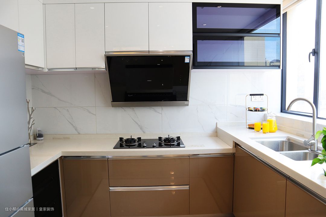 高区橱柜的高度是比较适合顺带把嵌入式洗碗机收进去的,装修厨房的时候可以根据洗碗机的高度来设计。