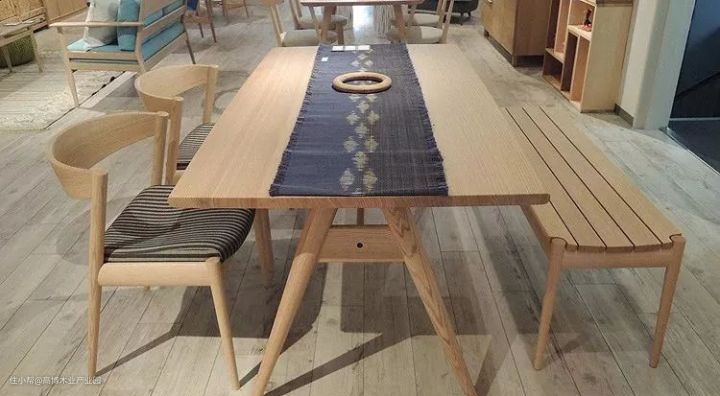 我们可以看到同样的木材的桌子,上图中首先它的木材都是通过径切产生的,这一方面就会比下图中的桌子会贵一点。