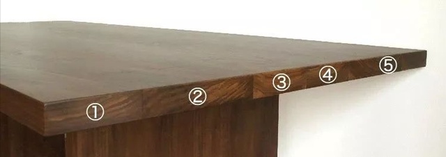 这张桌子就是我们一般会看到的实木的桌子的样子,通过几个木板拼接成一个大木板。这种情况下,同样面积的桌面,使用的拼接木材数量越少,价值越高。打个比方,同样面积180*90的情况下,使用六块木材的桌子通常会比使用八块木材的桌子价格会高一点。