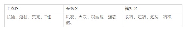 我们将经常穿的衣服,根据衣服的长短、宽窄划分为上衣区、长衣区、裤挂区。