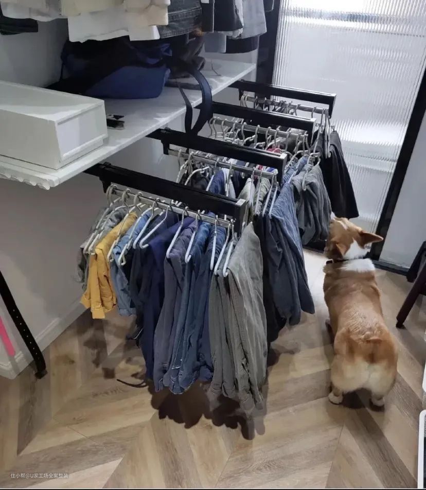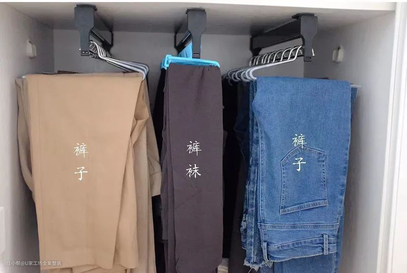 如果上衣没有这么多,可以将下方的短衣区也设定为裤挂区,和长衣区下方一致采用纵向伸缩挂杆。