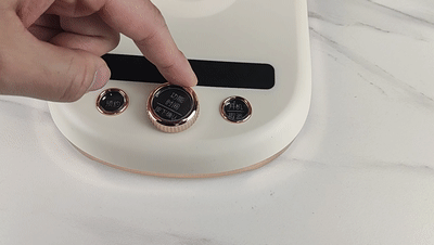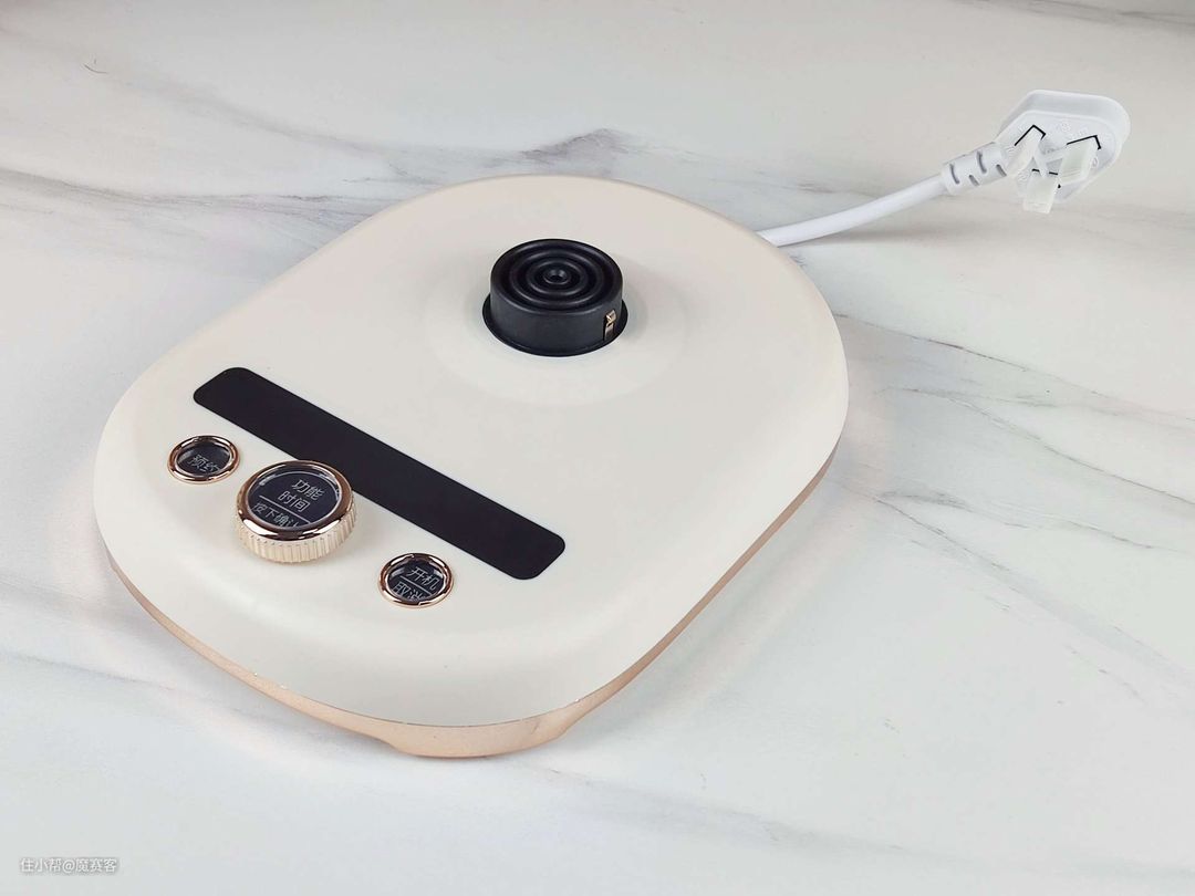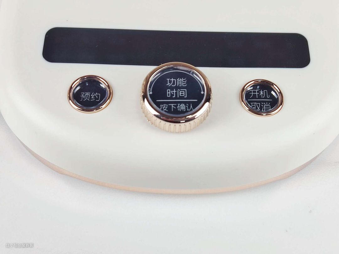 ▲操作底盘上有3个实体按键,左边为预约键,右边为开机/取消键,而中间的为功能键,这个按键为旋转按压控制,通过旋转,可以选择实现多达12款菜单的控制,而按压则可以轻松感知选择的反馈。