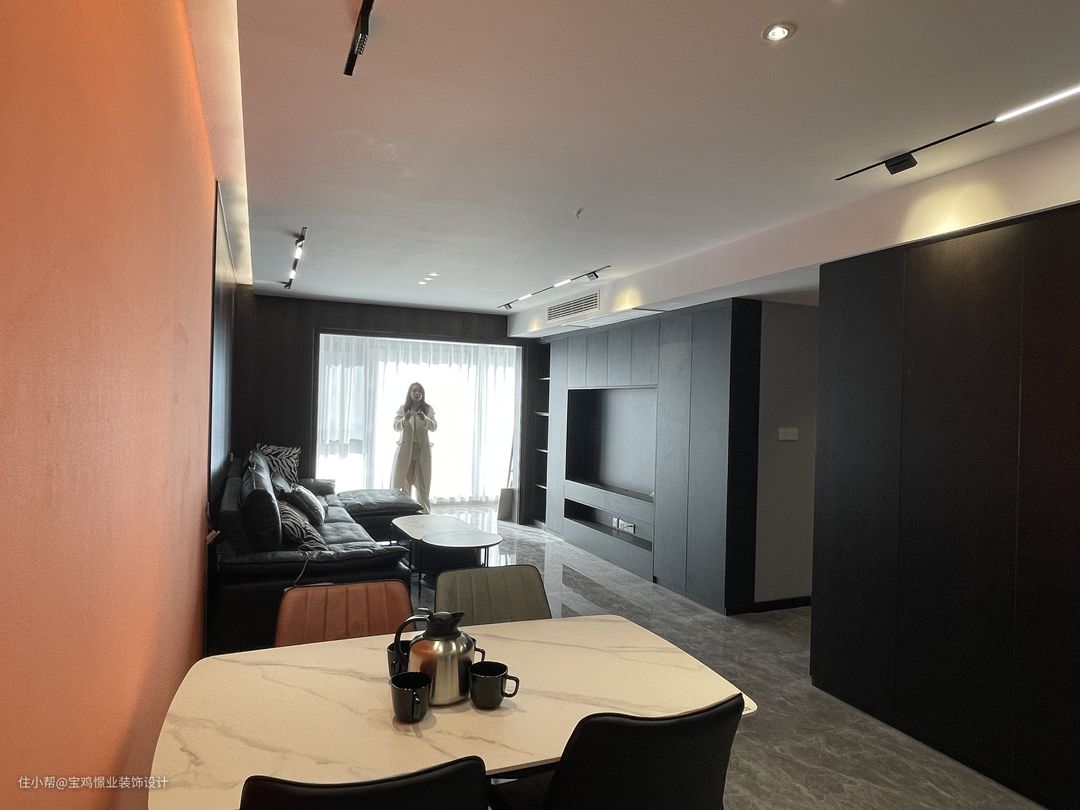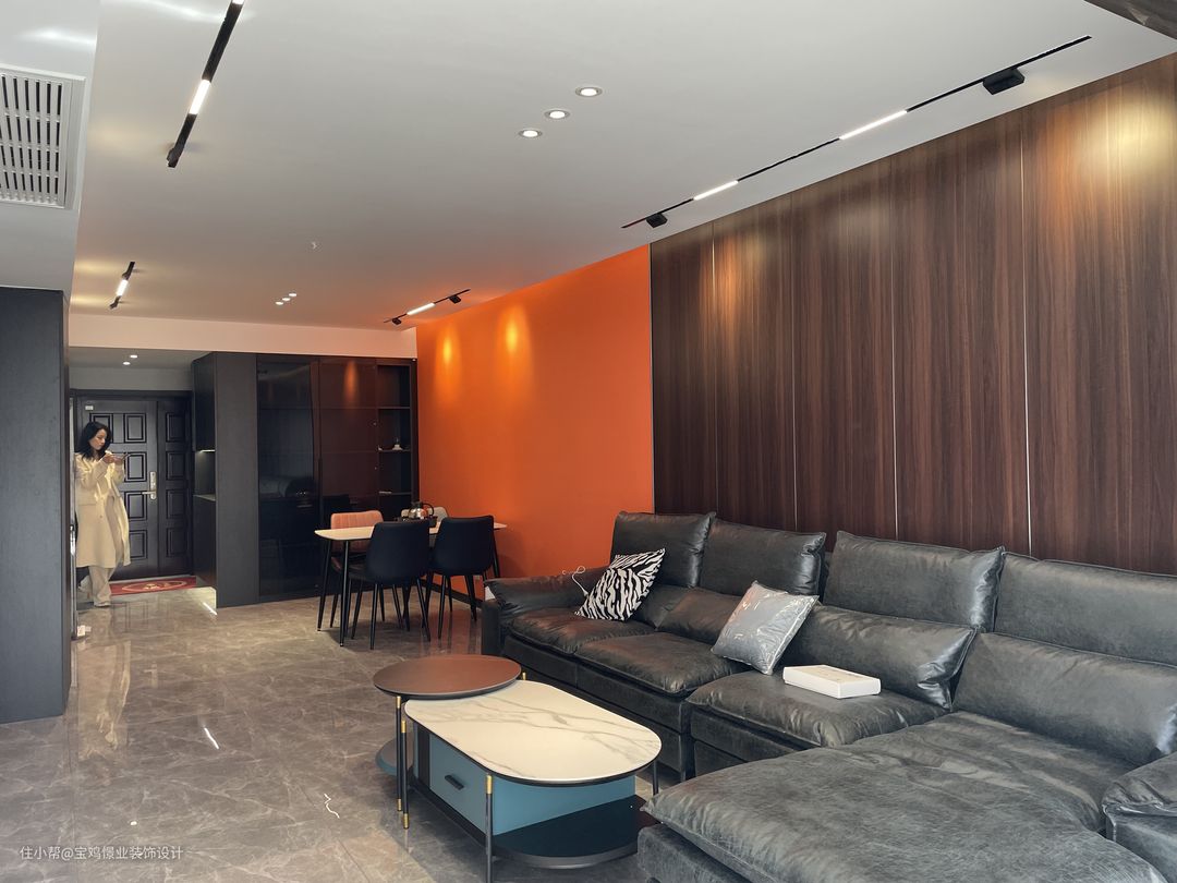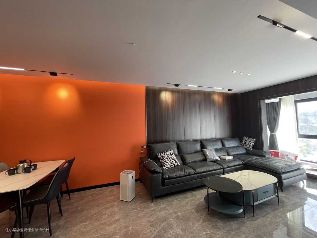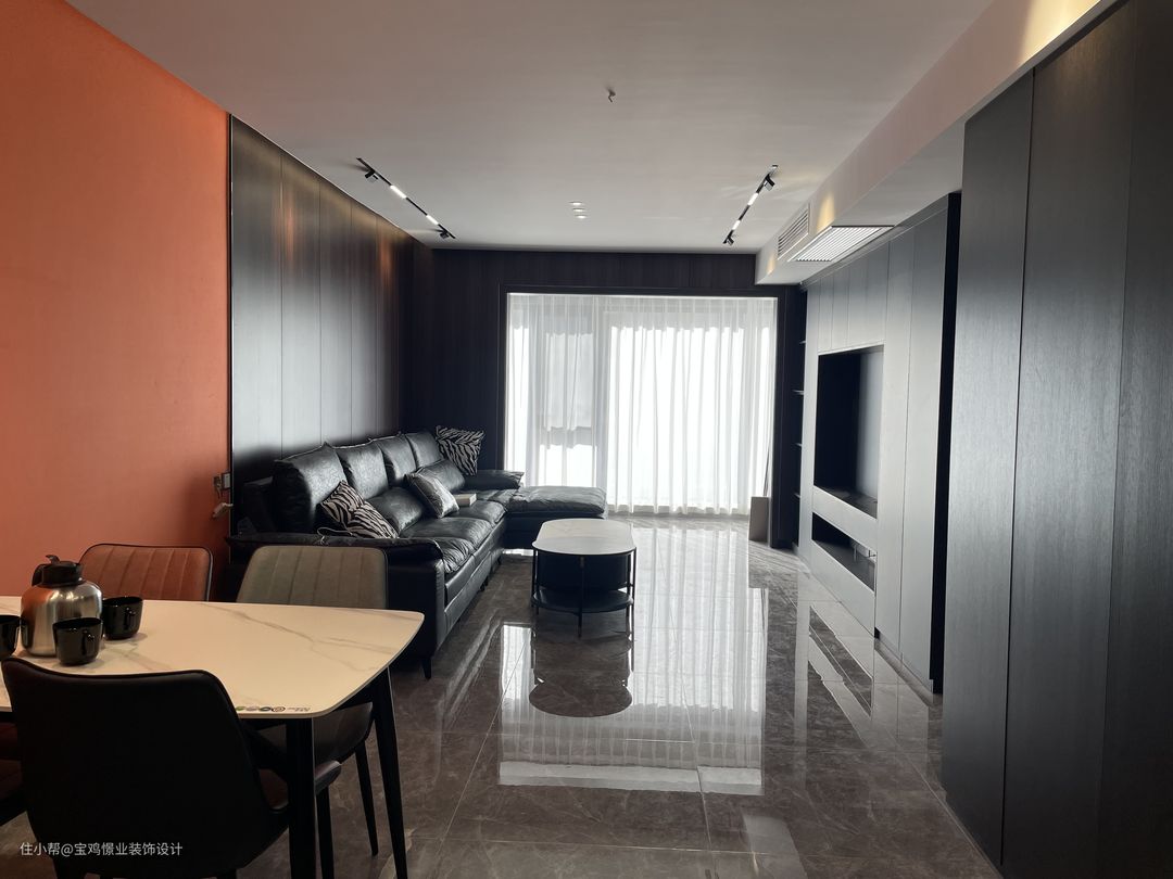 这是位于高新区高新五路吾悦华府123平的完工实景 ,整体色彩偏灰黑,搭配爱马仕橙,凸显档次!
