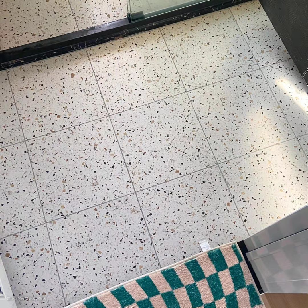 水磨石的拼色设计,让家装设计有了更多可能。以白色为基调的水磨石地面,加以各种杂色的混合,让地面的层次感更加丰富,与大白墙搭配起来丝毫不显突兀,反而有一种简约美和高级感,放在浴室等空间,也能提升整体空间亮度。