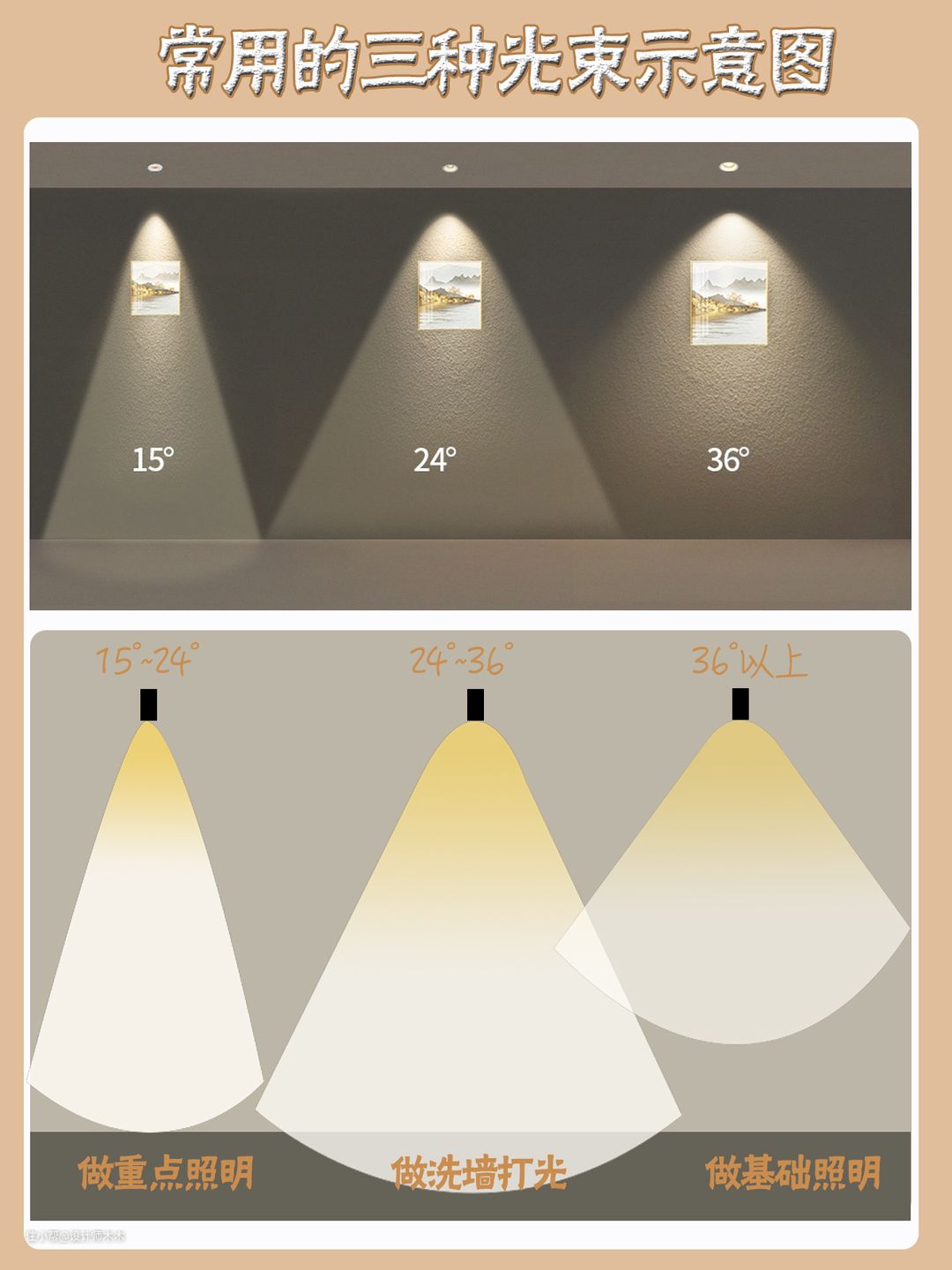 24°-45°光束角适合用来洗墙打光、做局部照明,用途较广