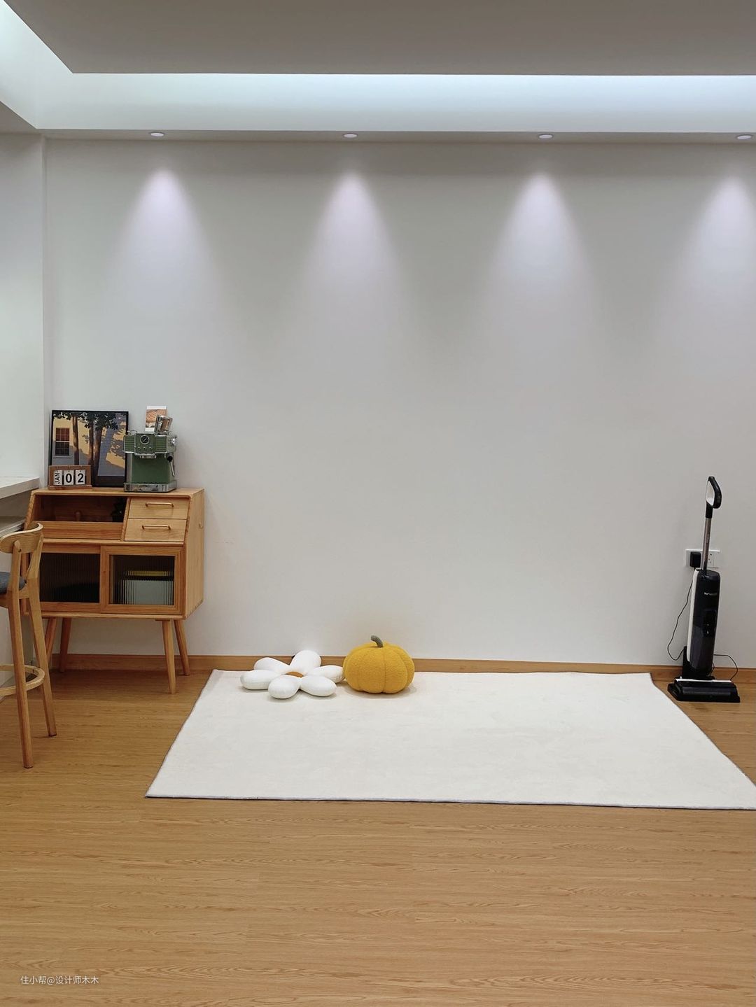 如果很难把握,可以参考我家的无主灯设计,除了卧室其他都刷了大白墙,铺了原木风地板,没有过多的家具。灯用了魅光照明,色温建议选择3500k的,显色指数我都选择了≥95的,很好地还原了事物本身的颜色。