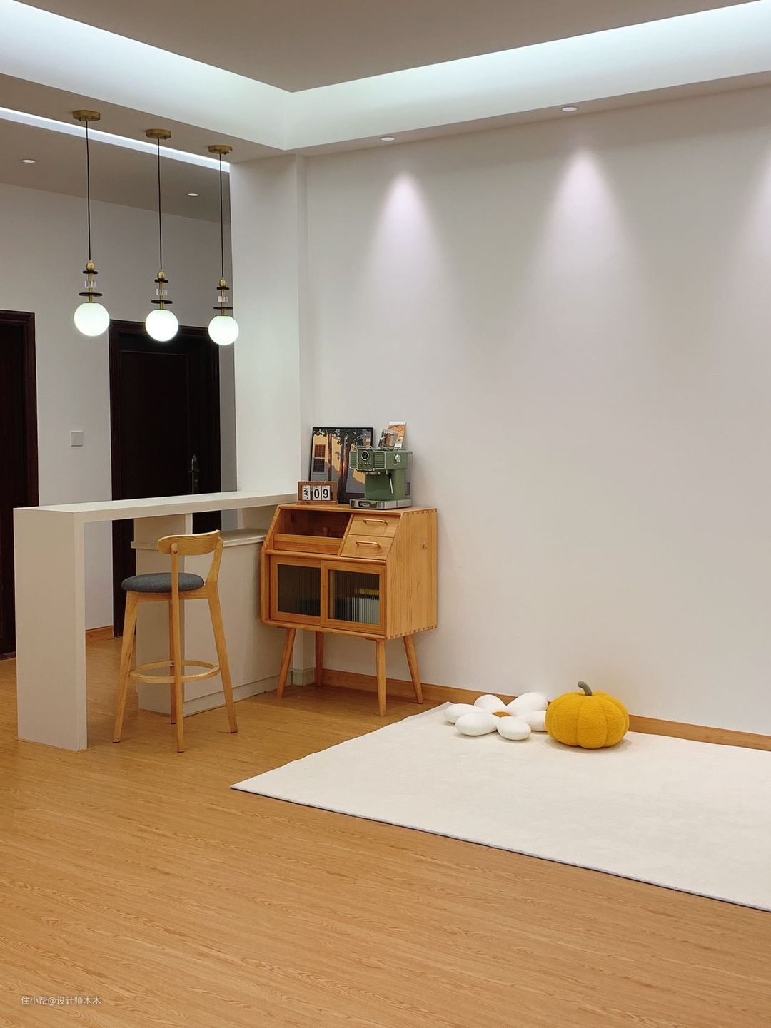 4.吧台区域也做了三个吊灯,其实照明已经够了,主要是增加氛围感