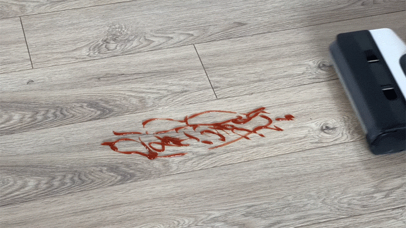 在文章的最后,我突发奇想,想要看看它的自清洁能力如何。在地上倒了一杯过期的红酒,吸干之后能看到滚刷有些偏红但是不太明显。