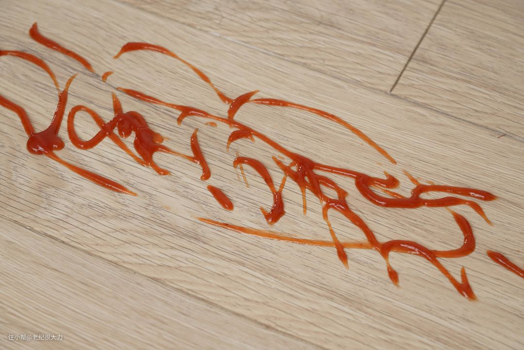 整点黏糊糊的番茄酱挤在地上,看看它能不能搞定(此番茄酱已经过期2年,废物利用避免浪费)。