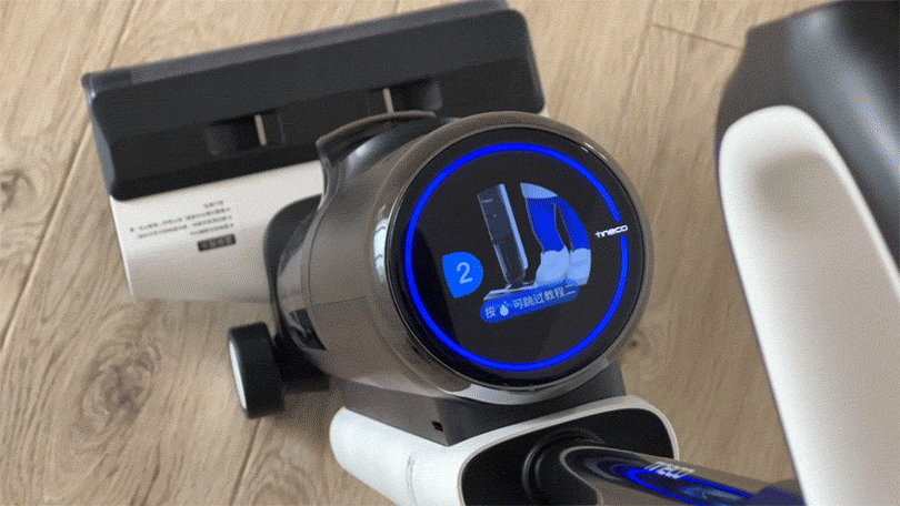 第一次开机会有动画演示指导你如何使用洗地机,家里老人对照着动画讲解也能轻松上手。如果一次没看懂,还可以重新启动新手教程再看几次。