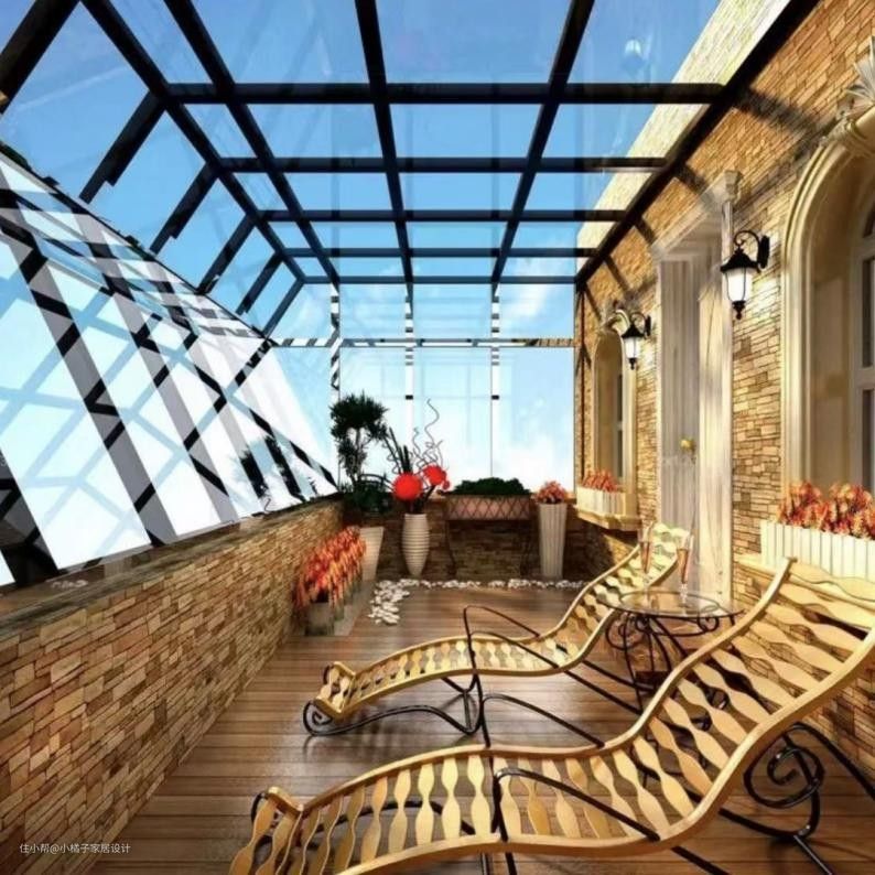 露台作为室内室外的交汇点,有着极好的视野和采光,许多业主在打理露台时,为了突出露台原有的功能,通常会在露台上搭建上一个遮阳雨棚,在天气晴朗的时候,可以坐在露台上吹吹风,看看风景,十分惬意,但雨棚由于自身的局限性,无法提供更多的保护在很多方面都比上阳光房。