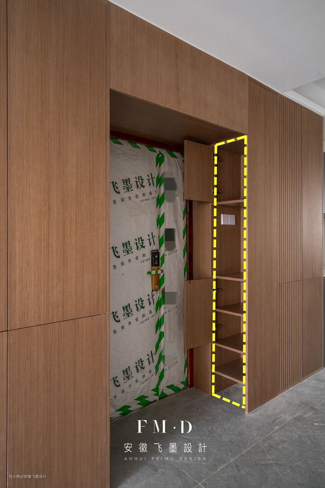 有没有人注意到进门柜体的侧边空间?为了方便业主使用,还做了一部分隐藏的存储空间。内部全部打上开放式的置物架做物品包存储,部分安装柜门划分成封闭式空间,可以存储鞋子,钥匙等小物件。