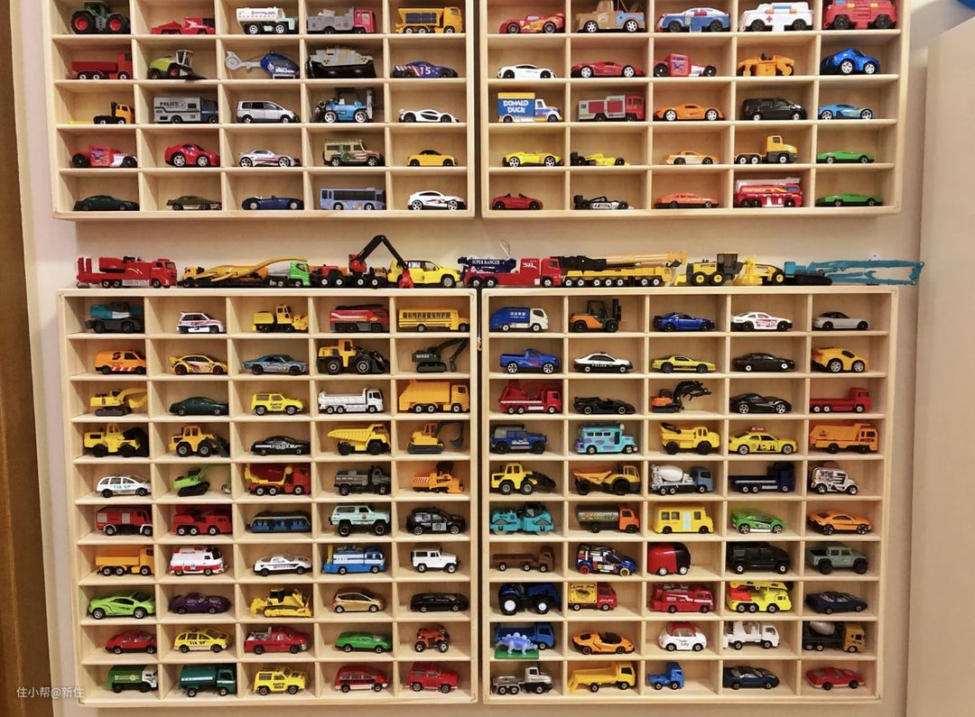 当然,考虑到普通家庭不会只有车这一种玩具,大多是大小不一,形状不一,且五颜六色,陈列出来,效果并不好。所以并没有把这个纳入到正面案例里。