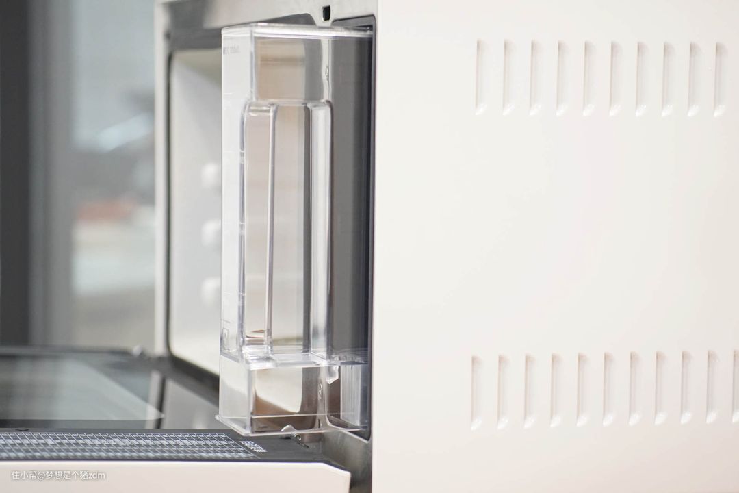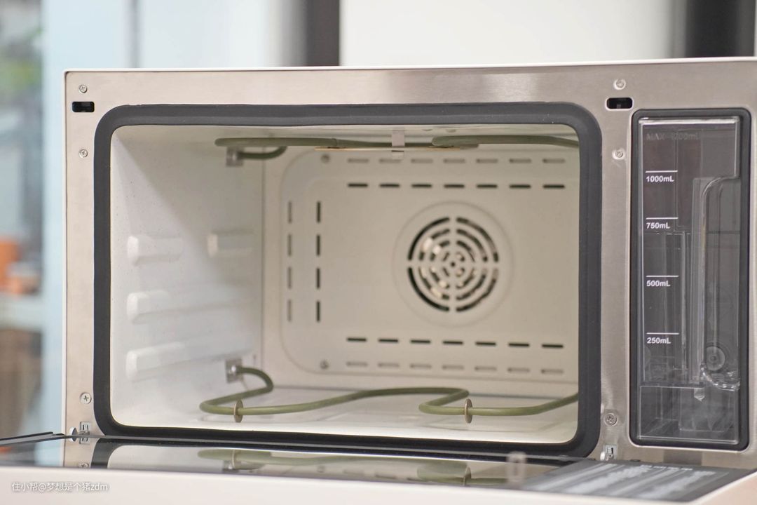内置水箱其实是有一定的缺点的,因为在烹饪过程中如果缺水,需要将蒸烤箱门板拉开后再取出水箱,这样其实不利于保持机器内部温度,会打断烹饪过程而造成食材口感出现变化,不过好在大宇的这款K9蒸烤炸箱的内置水箱容量比较大,达到了1000ml,所以基本上还是很难出现烹饪过程中需要加水的情况。