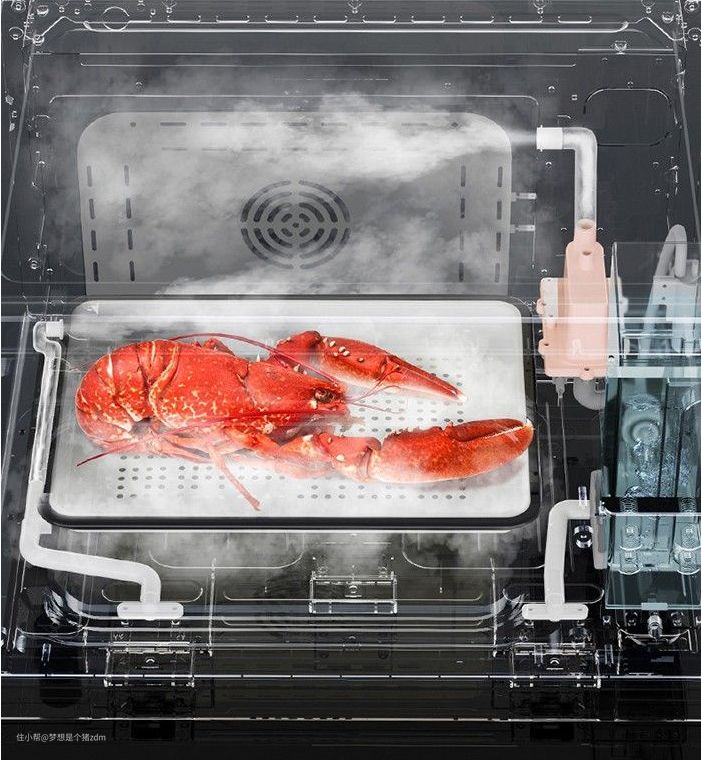 蒸汽直喷能够在约40秒的时间内快速地输出大量蒸汽,让蒸汽快速包裹食物,同时还能实现多层同蒸;上下M型加热管+背部热风功能,并且能够通过两个NTC探头来进行火力全域分层控温,这比起普通的烤箱那种单一性控温要更好用,烤出来的食物口感上也更有层次。