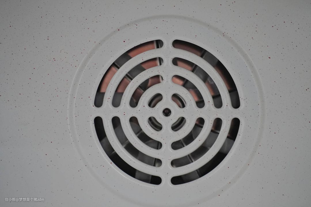 这是后部热风系统,在工作过程中,内置电机带动循环风扇,就可以将蒸烤炸箱内部热量均匀的分布到每一个角落。