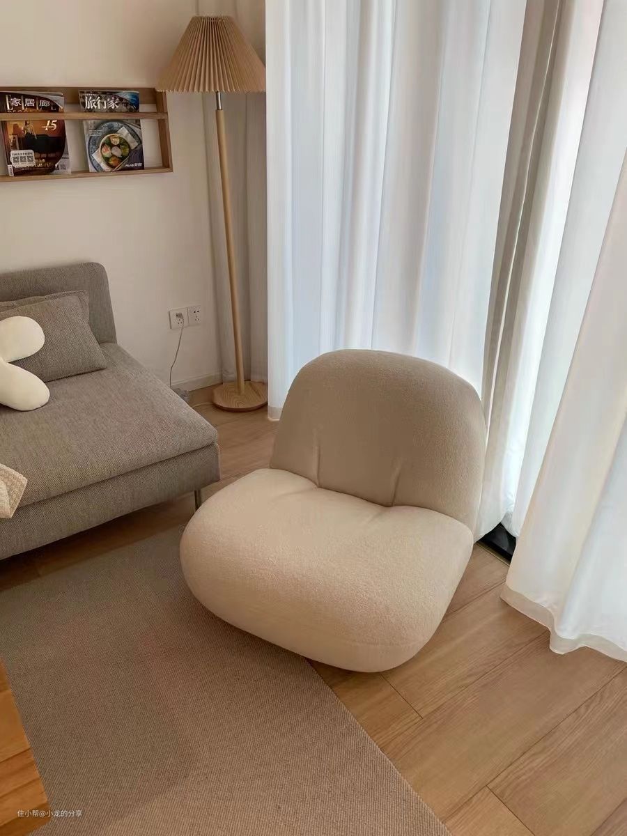 我家这个懒人沙发有白白胖胖的外观,用的是很柔软的羊羔绒,非常软糯厚实,有婴儿般的温柔感。月影家居懒人沙发小巧不占地方,放在客厅、卧室都可以,减压护脊的设计,坐一天也不会腰疼,腰臀都能贴合靠背,坐着非常放松。