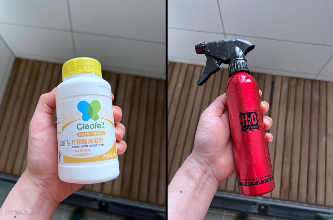 - 250ml水中添加约20g柠檬酸颗粒(比一般除垢使用量多一些),保证浓度也保证清洁效果。