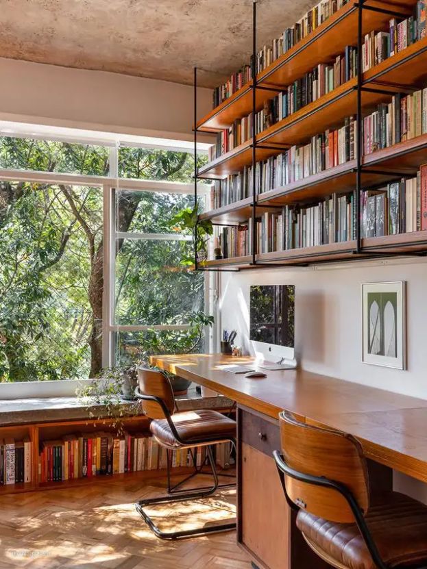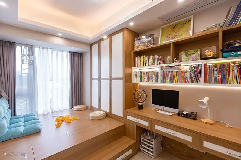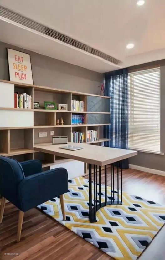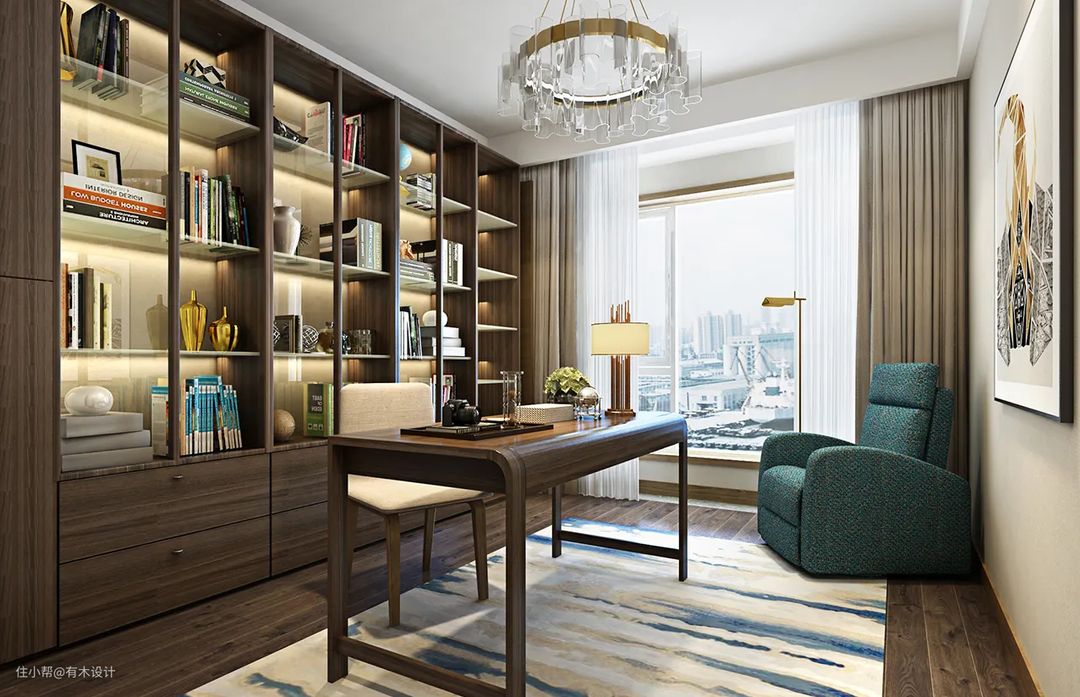 书房是人沉静思绪的地方,应以柔和安静为主。同时注意避免色系过暗、光线差,避免产生视线疲劳,心绪不宁等负面效果,从而无法专心工作或阅读。