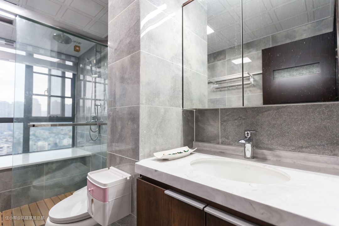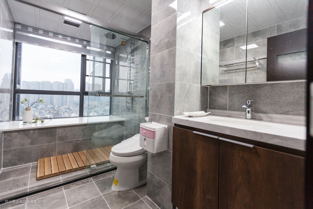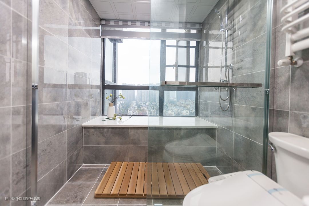 再看看做了浴缸之后的隔断设计,其实这算是一个三分离的卫生间,首先将洗漱区和如厕区之间砌了半墙做隔断,在淋浴区与干区之间又装了玻璃门,做到了最有效的干湿分离。