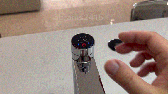 ▲龙头没有常规把手,取而代之是类似拨片的设计。往右拨是常温净水、往左拨45℃、长按解锁键再往左拨激活95℃高温净水。