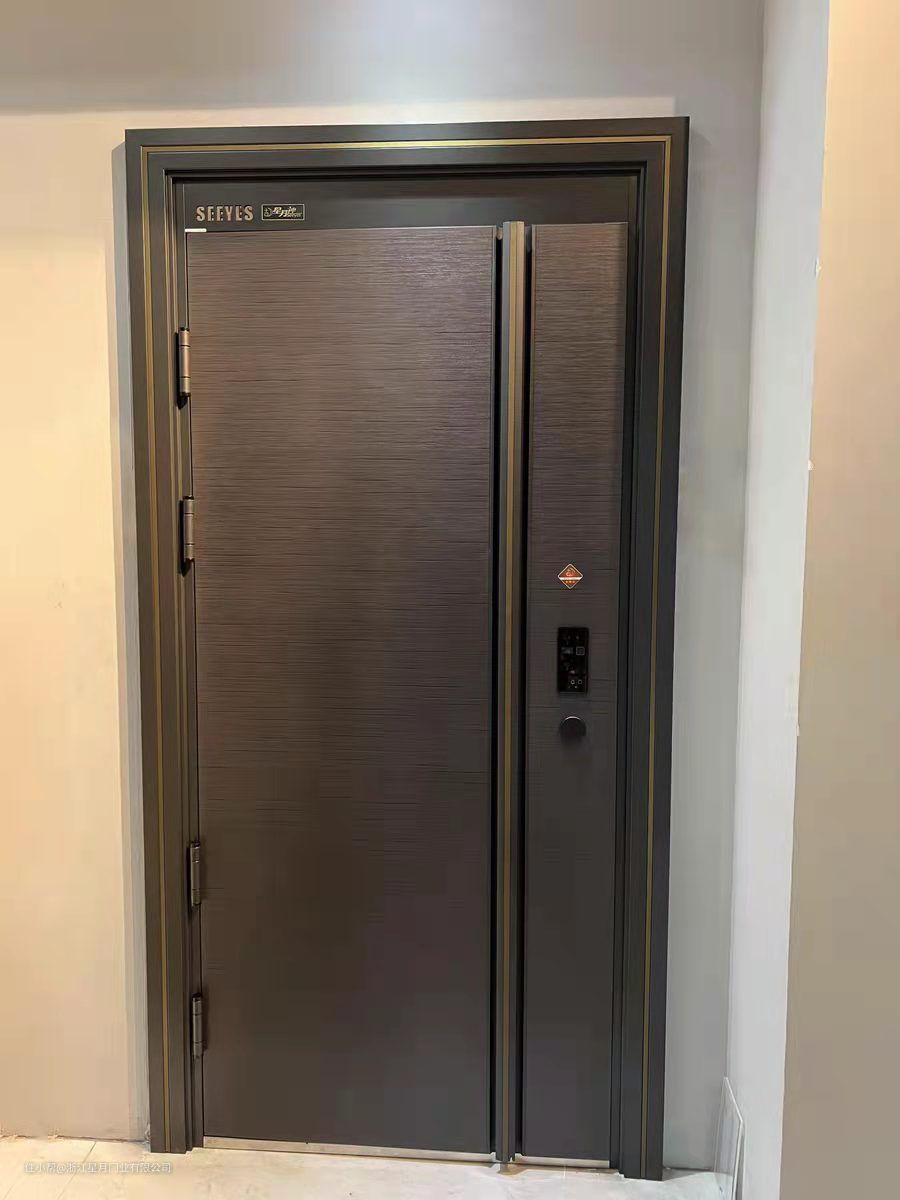 2⃣平开门:市面上大多数的防盗门样式,仅一个门面。优点在于适配所有家庭门洞,不需要额外开凿门洞,且不需定制,款式多样,选择范围较广。缺点在于固定尺寸,大件家具进出较不方便。