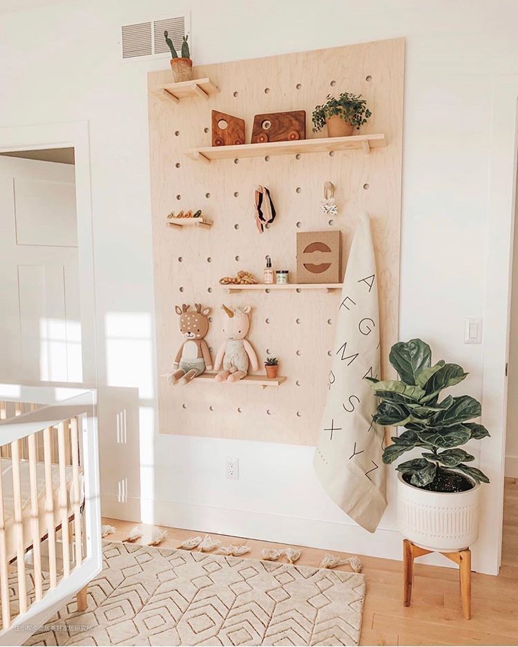 如果你是在客厅使用,建议使用木质的洞洞板,颜值高,质感好,但是网上常见的是松木洞洞板,一般表面都没有处理,不适合厨房之类潮湿的收纳,容易脏,所以购买时一定要了解清楚木质具体是什么树种。