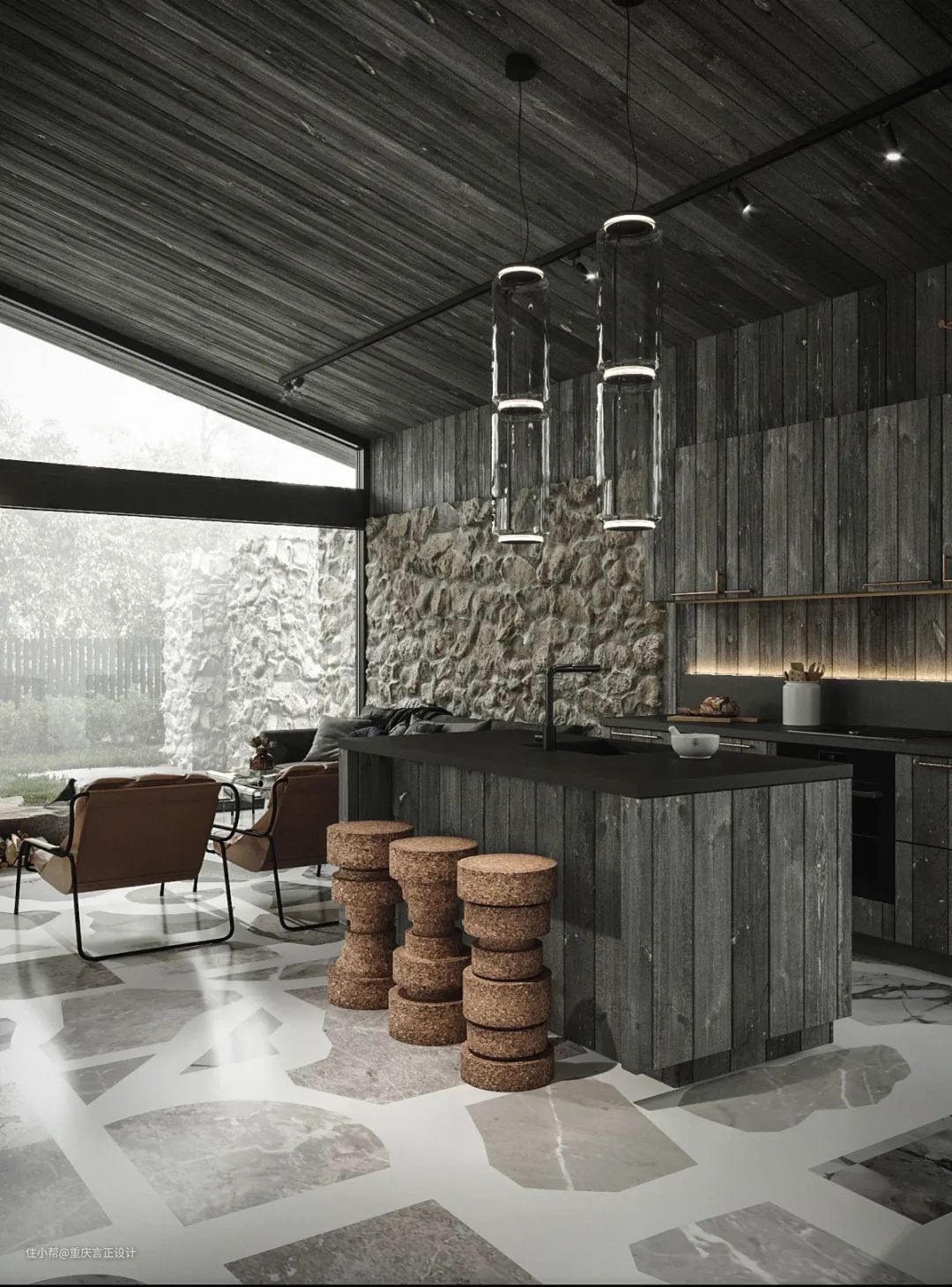 这种黑色石头厨房岛台提供了一个更坚固的方法。