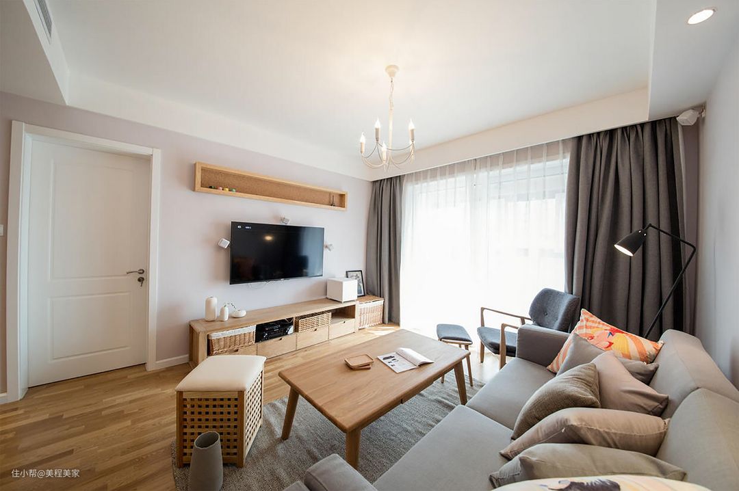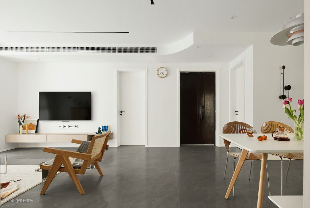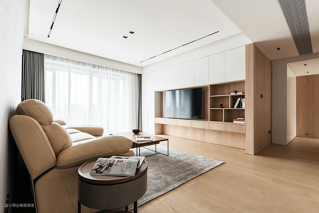 主要运用在小户型的装修之中,日式,原木和北欧风比较常见。如果您家需要更多的收纳空间的话,那就上整面背景墙的电视柜吧: