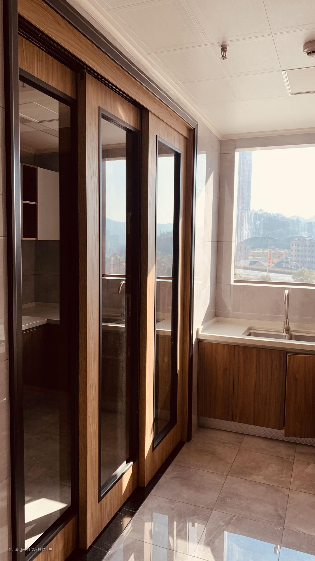 12、厨房空间小,建议使用玻璃门或推拉门防止开关门勿撞到人。