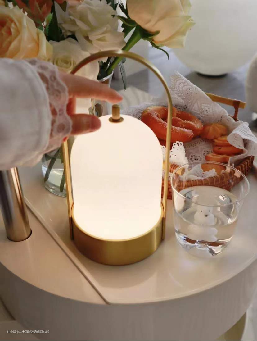 客厅的中间舍弃了传统的茶几,而是用一个可旋转的角几代替,占用的空间更少,收纳空间却非常的足。角几的顶面还是一个小台面,可以摆放一些装饰物,摆上一盏小巧可移动的手提灯,增加整体的温馨感,孩子最喜欢这盏灯,可以提着到处溜达。