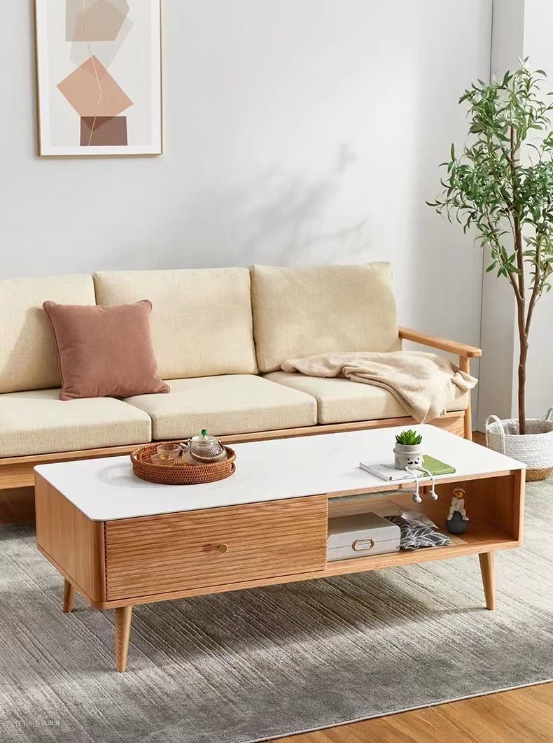 比如北欧小清新风格适合玻璃茶几,现代风格适合岩板茶几,中式风格可以搭配木质茶几。月影家居的木质茶几与岩板茶几属于搭配频率较高的两款。