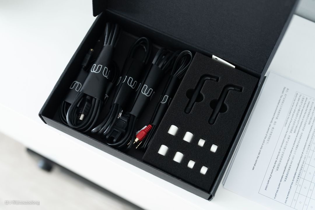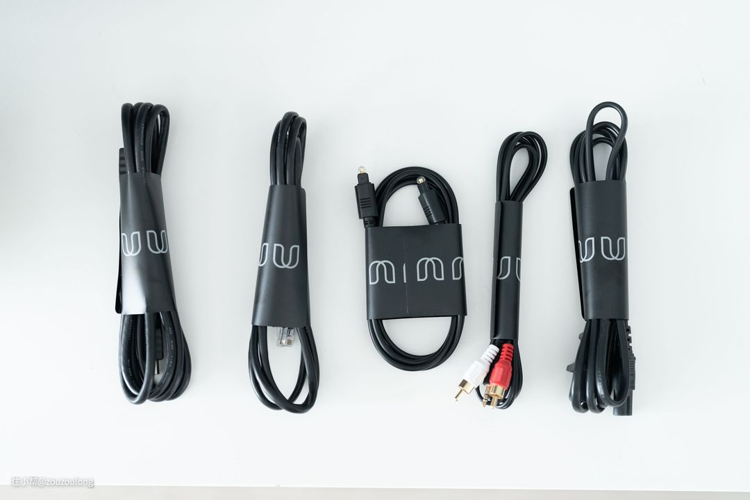 附送的线材包括LAN口网线、HDMI线、电源线、RAC接线和光纤线,接口都做了保护,细节满满。