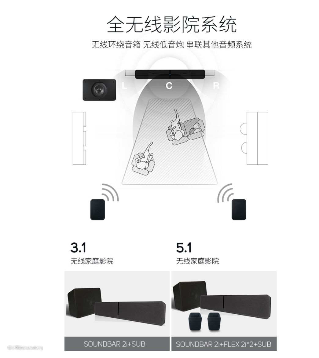 此外,BLUESOUND的产品系也比较全,除了我现在已经入手的SOUNDBAR 2i,还可以选配SUB和FLEX 2i来组成3.1或5.1无线家庭影院,或者搭配Powernode全功能无线串流播放综合扩大机来组建旗舰版家庭影院...可玩性可以说是相当不错了。