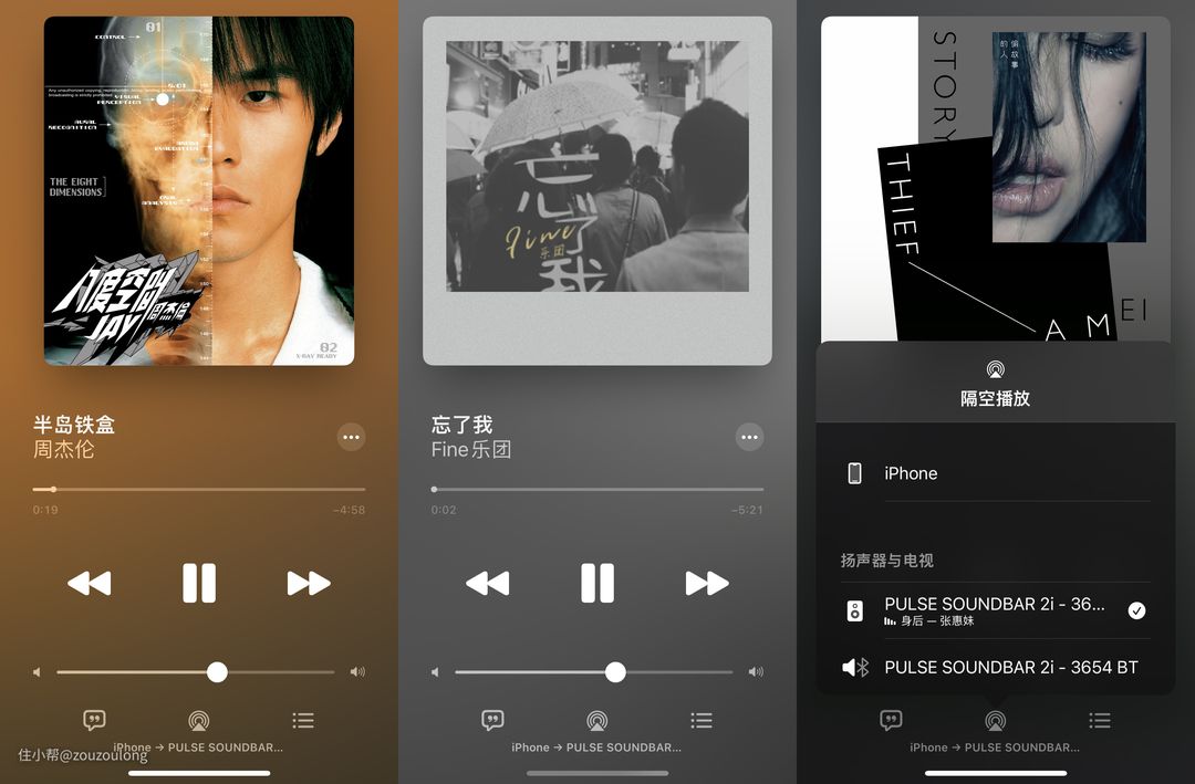 我把SOUNDBAR 2i通过AirPlay2连接上我的手机,主要测试了一下周杰伦的《半岛铁盒》、Fine乐团的《忘了我》和张惠妹的《身后》等曲目,直接选择音乐模式下的默认设置。
