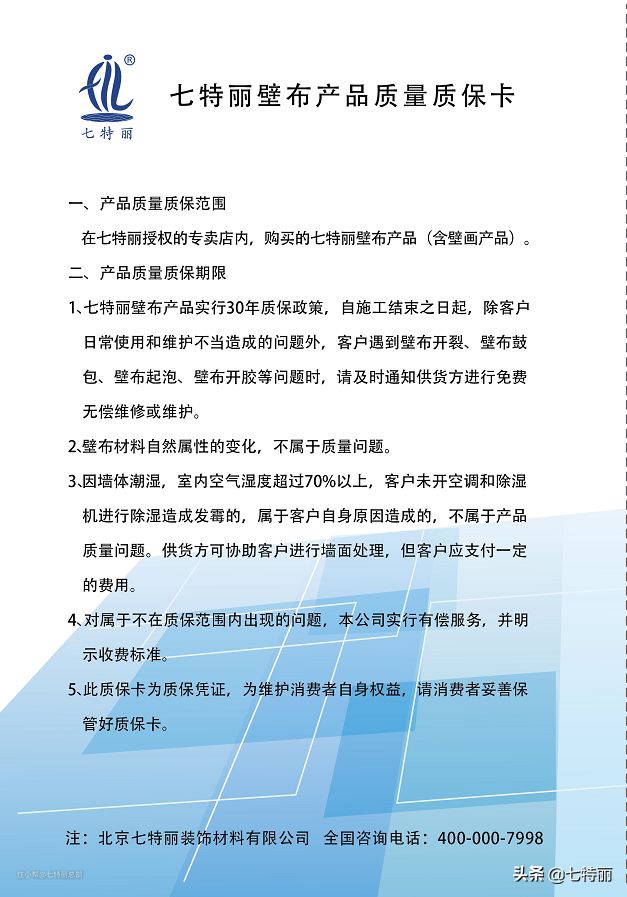 北京七特丽装饰材料有限公司是研发生产无缝壁布、成品窗帘、七防三零微晶地板、本草糯米浆以及壁画、挂画等多种建筑装饰材料的综合性公司。