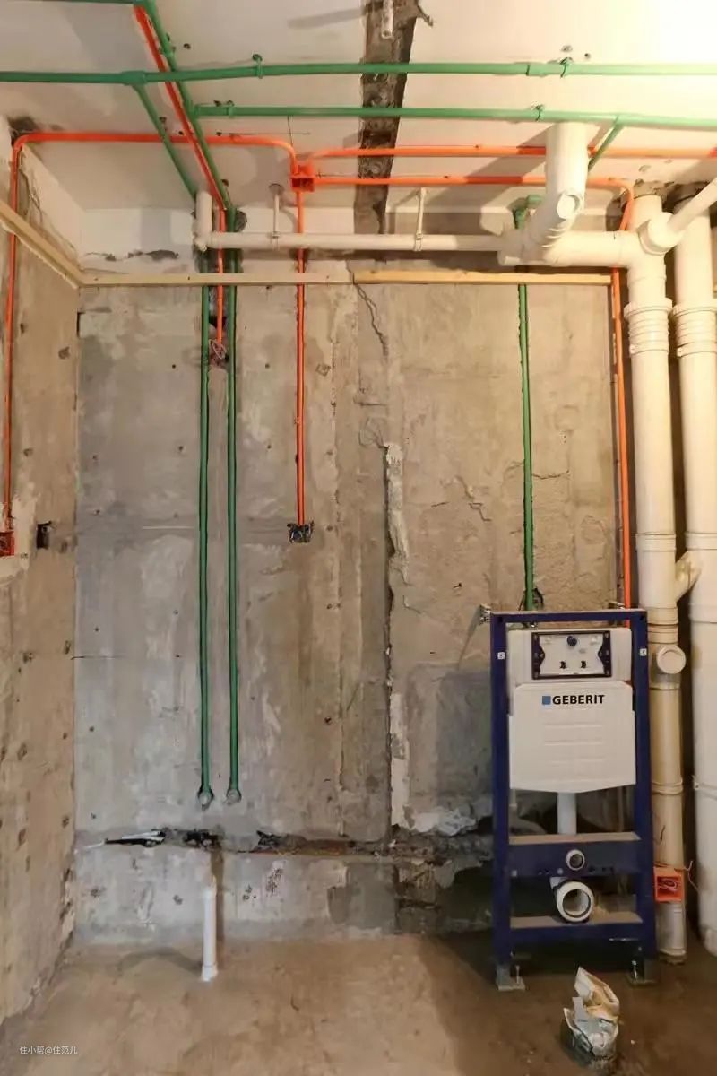 瓦工施工完毕进入卫浴安装阶段,墙外的马桶部分再送货安装。