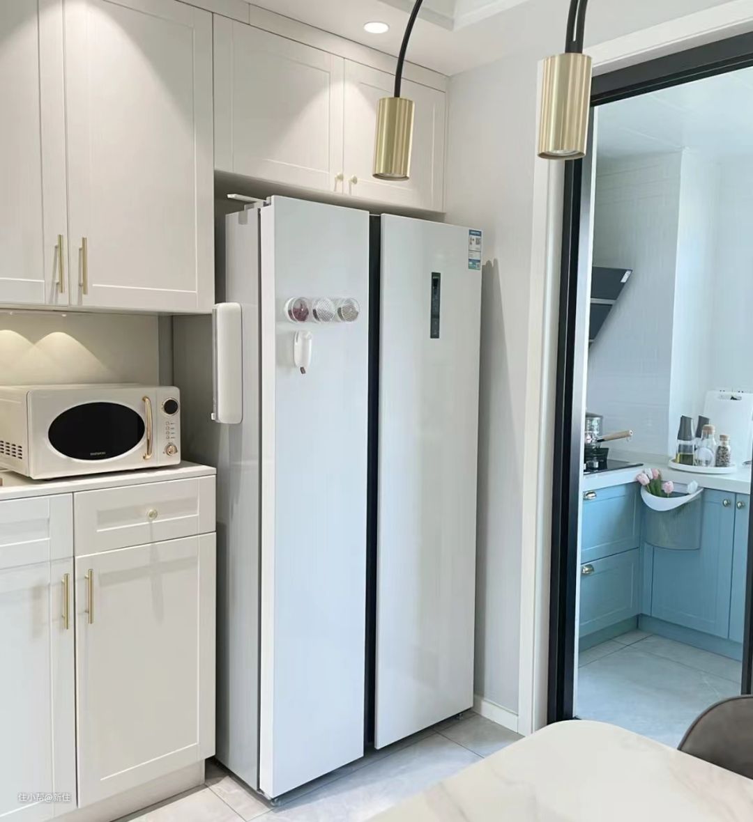 还有就是,要提醒设计师,冰箱两侧各留2公分散热空间,并且插座不要放在冰箱正后方,会影响柜子厚度,本来尺寸卡的严严实实,最后因为插座往出凸两三公分,得不偿失。