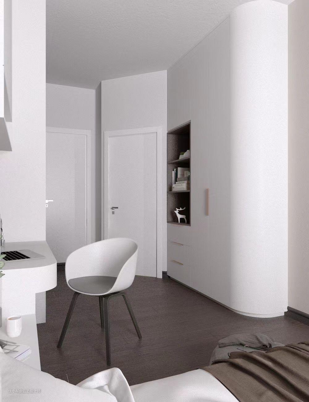 ◈整个卧室采用白色调为主,通透明亮,白色的储物柜简洁高级,几个小物件的装修,视觉上更加饱满,让人心情瞬间治愈。颜色的统一搭配会使色调统一更加显高级。