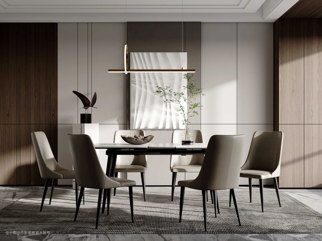 如果对餐桌配色有要求,还可选用百搭的灰色系岩板餐桌。阿玛尼本身是时尚与前卫的代名词,合理搭配餐桌颜色,营造出高大上的现代时尚感,和极致高雅的装饰艺术感。