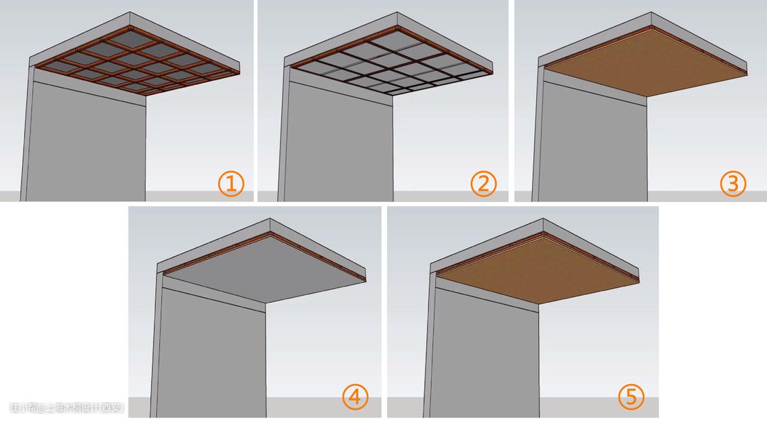 ⑤用水泥板或者石膏板封面,这样顶面的基础隔音层就做好了。
