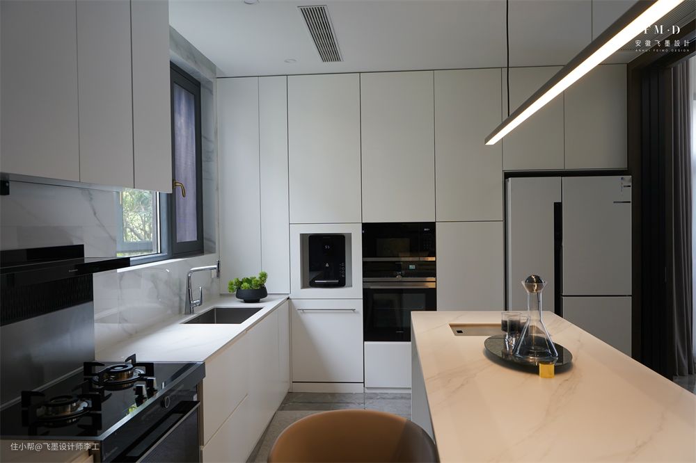 有条件的可以装个中岛台,不仅是增加了操作和收纳空间,也能让原本的中厨分出西厨的用法!