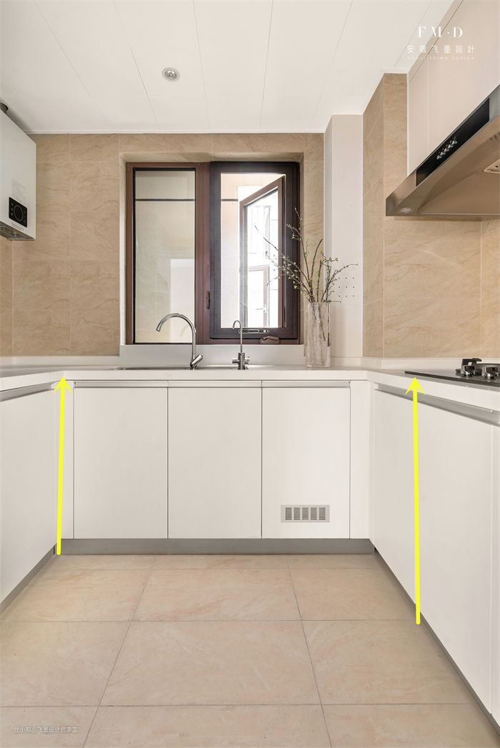 操作台的高度要算好,不然下厨总是弯腰或者踮脚的话,会导致腰酸背痛,别光因为重视收纳而忽视了台面高度的重要性。市面常见的高度一般就是80cm、75cm、65cm。在选择时一定要结合自身情况来定。