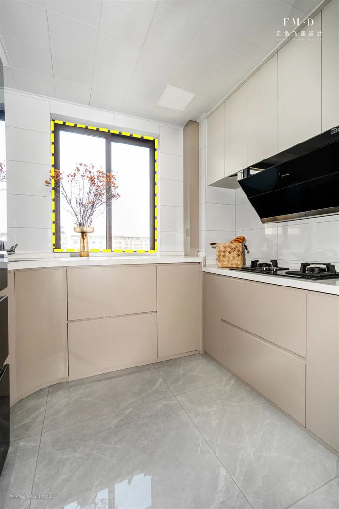 如果是有正常开窗户的厨房,最好是不要在这里装吊柜了,多少都会挡光的。倒不如将水槽装在窗户下方,这块的光线最好,洗碗洗菜会比较方便。