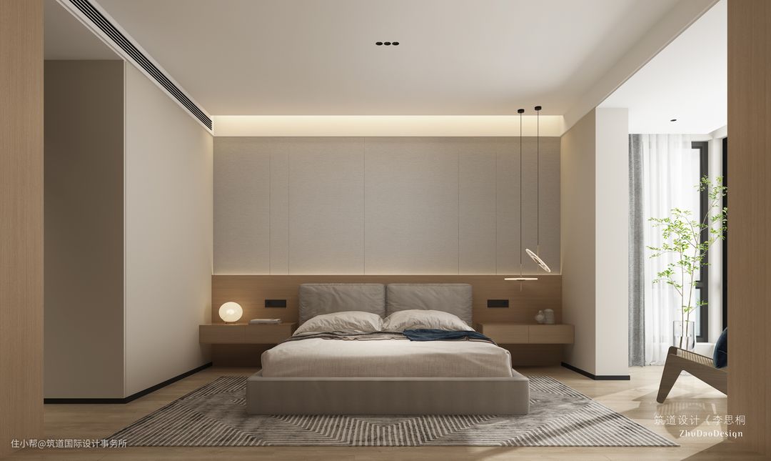 卧室整个空间用的是奶油色,