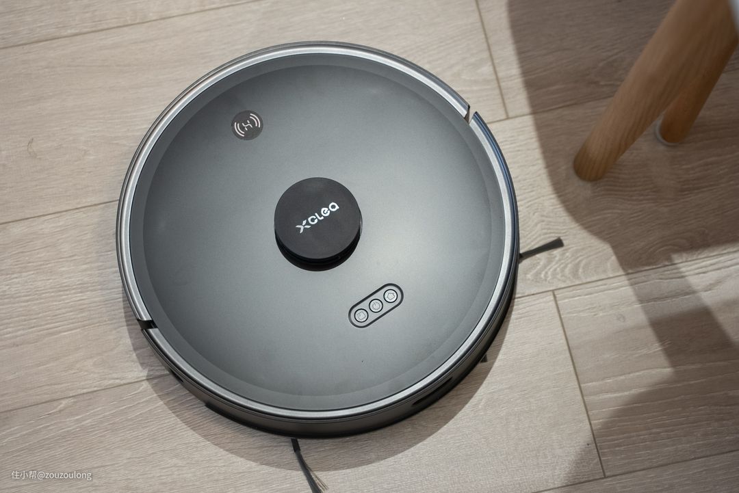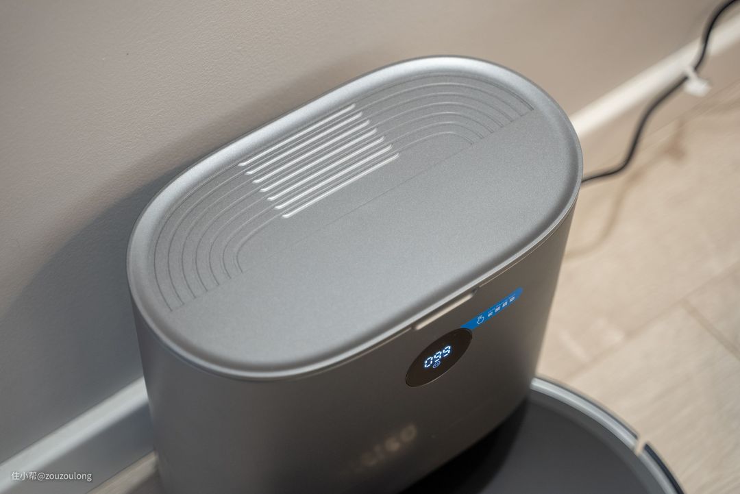 集尘站上部有扫拖机器人的实时电量显示,方便进行下一步的地面扫吸拖工作展开。顶盖上有半边的对称纹路,呈“C”状,呼应品牌名“XCLEA”,看上去也不会显得单调。